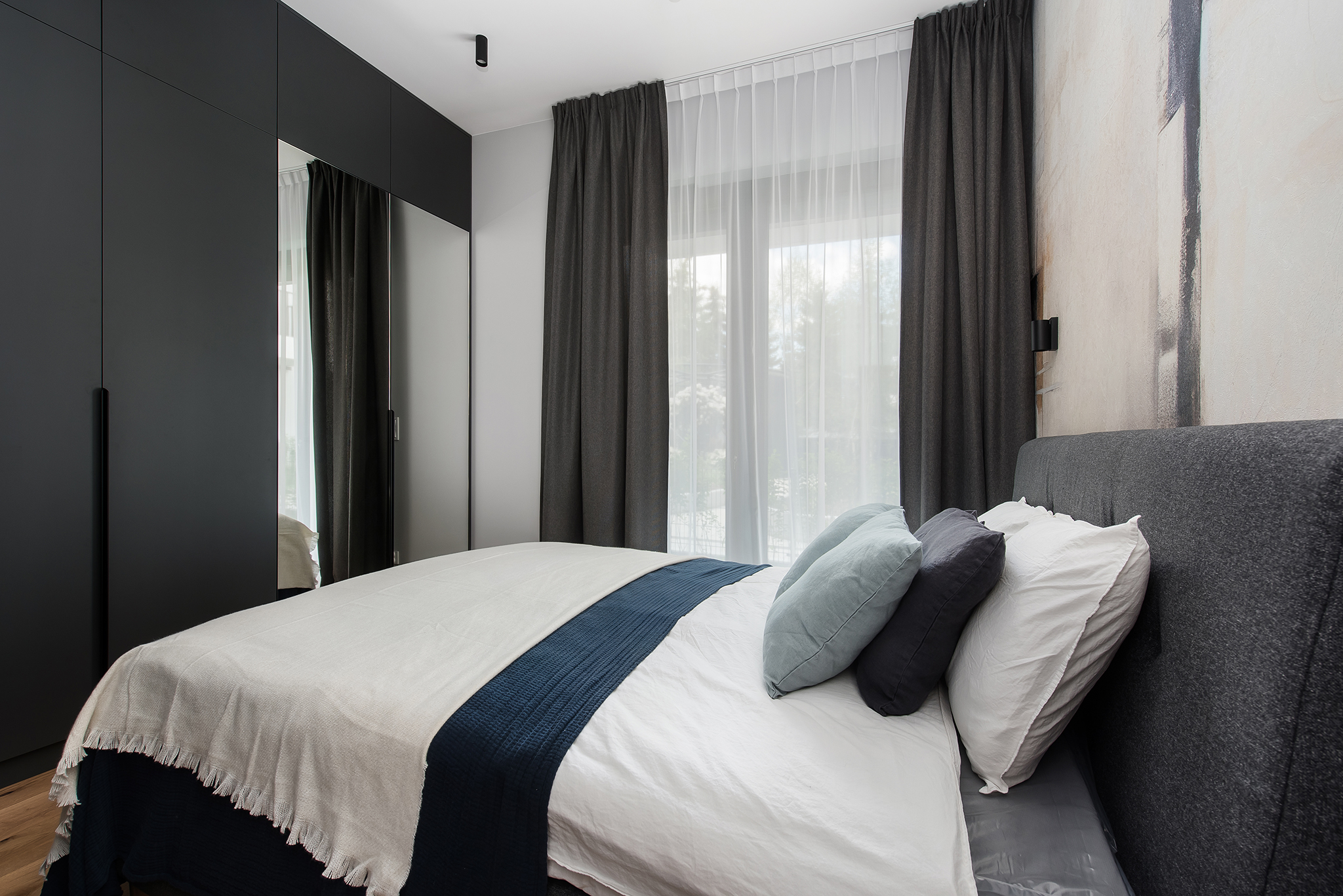 - Układ: salon z aneksem, 2 sypialnie, garderoba, łazienka
